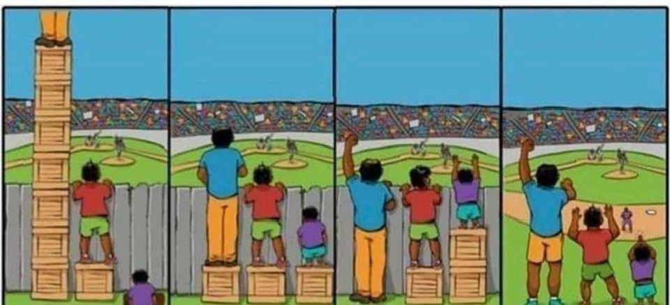 Det är svårt att beskriva kortfattat men det handlar egentligen om varje individ ska få samma grundplatta att stå på eller om varje individ ska få den hjälp hen behöver för att nå likvärdigt utfall.